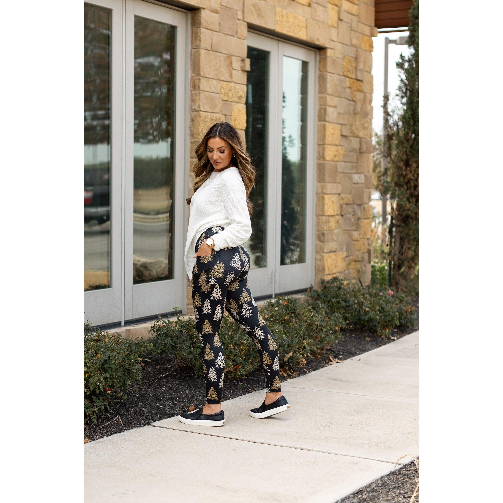 Leopard Christmas Tree Leggings with Pocket